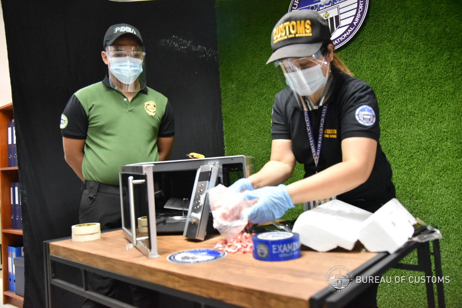 In a statement, the BOC said operatives of Customs Port of Ninoy Aquino International Airport’s (NAIA) Anti-illegal Drugs Task Force (CAIDTF), Philippine Drug Enforcement Agency (PDEA), and NAIA Inter-Agency Drug Interdiction Task Group (NAIA-IADITG) seized 1,681 tablets of ecstasy with an estimated street value of P2,857,700 concealed inside a microwave oven, while 133 grams of kush marijuana estimated at P159,600 was found inside a metal toy box.