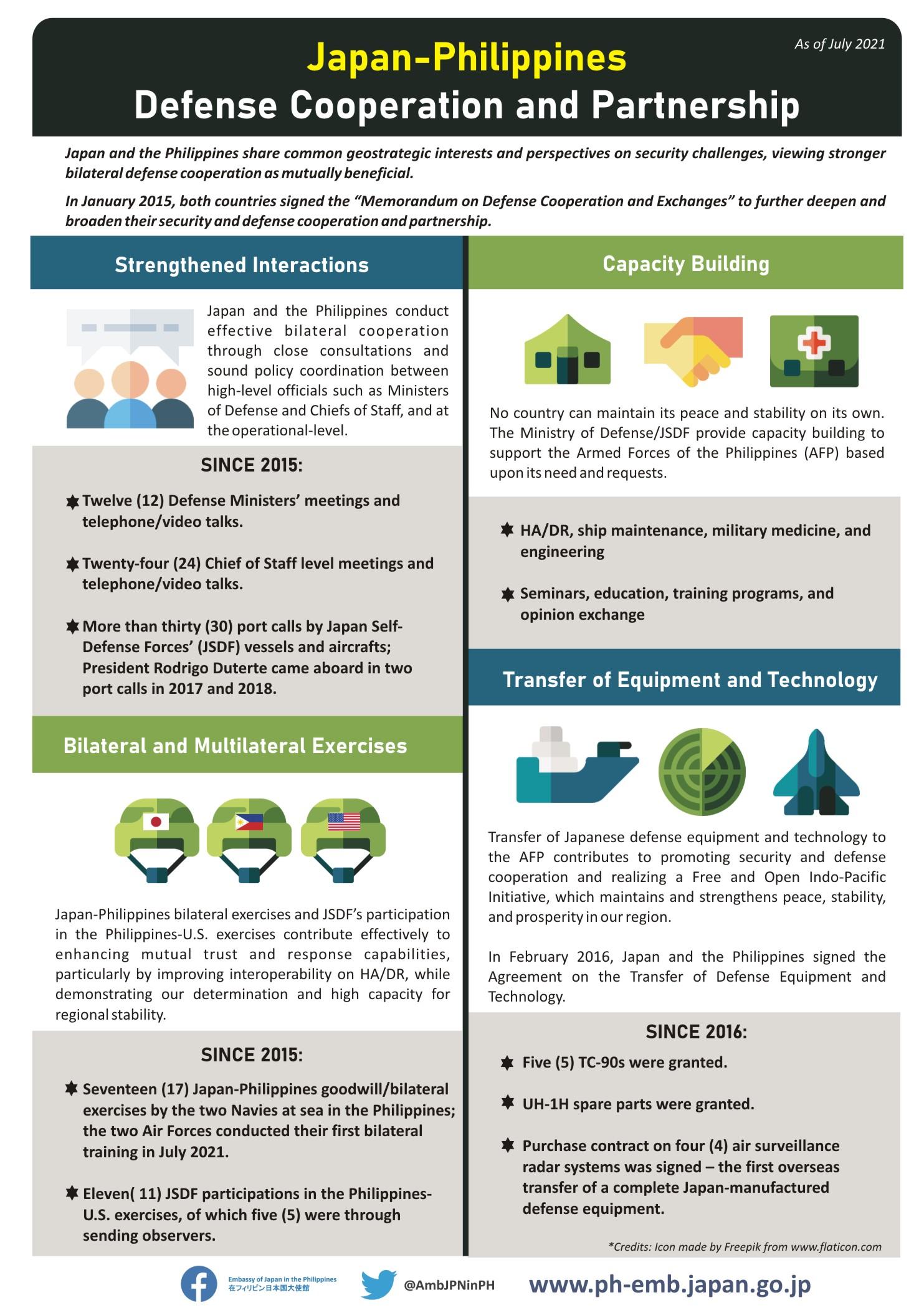 “Japan and the Philippines are both natural disaster-prone countries and there are so much we can share on disaster relief operations for saving lives and alleviating the suffering of people in need. We aim for achieving a higher level of coordination and operative capabilities on HA/DR through our training exercises with the PAF,” he said.