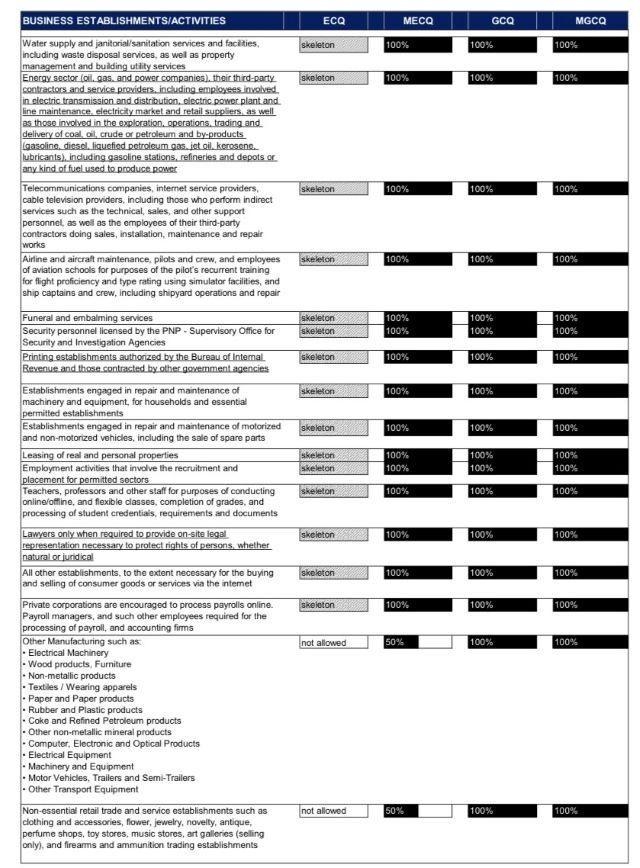 A summary of the community quarantines across the country follows: