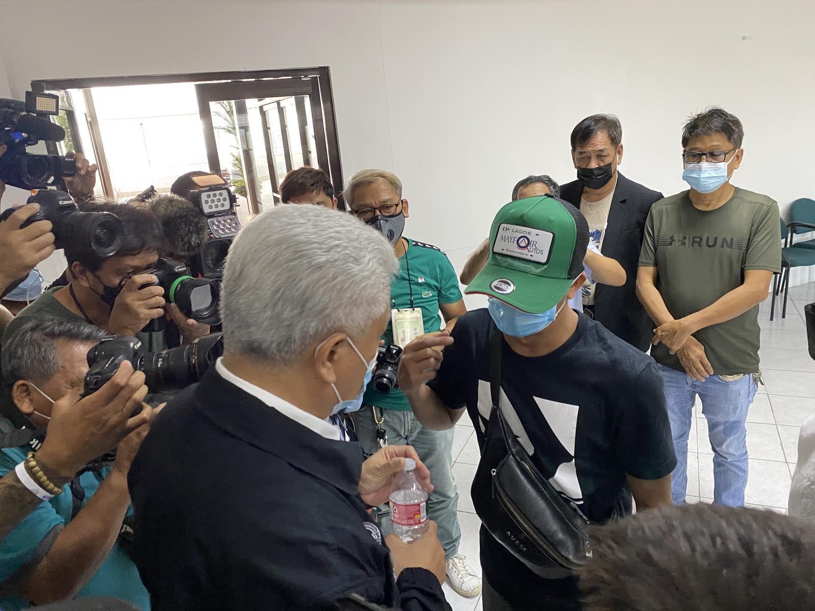 At a press briefing, one Bong Ricafort faced the media, denying that he was the one behind the alleged assassination threat against the former senator. He was accompanied by his lawyer.
