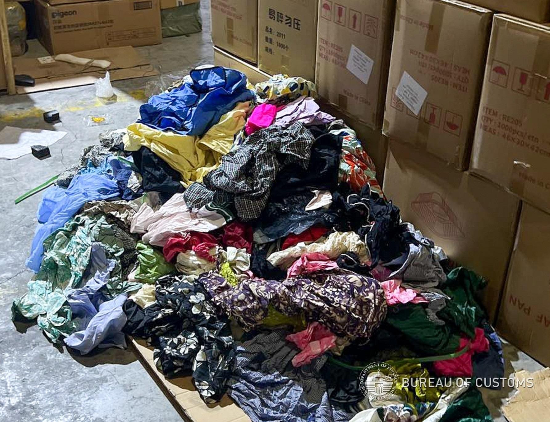 During the operation, Customs examiners discovered used clothing (ukay-ukay) and fake signature items such as Nike, Crocs, Sandugo, among others.