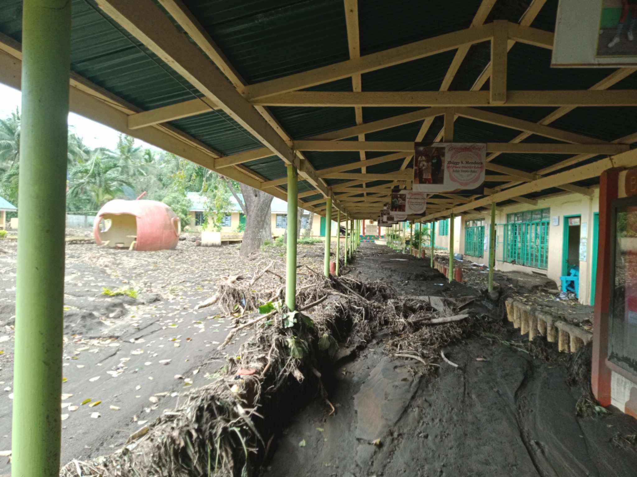 In a post on Facebook, Saleema Refran reported that the Bilibinwang Elementary School in the town of Agoncillo, Batangas is still partially buried in mud as a result of floodwater brought by Kristine.