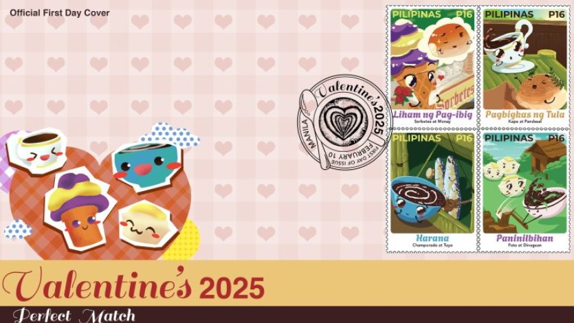 According to a statement Thursday, the new “Perfect Match” Valentine’s Stamps of 2025 feature animated illustrations of Filipino food pairings performing acts of love and affection such as writing love letters, reciting poetry, being of service, and performing the traditional harana (Filipino serenade).