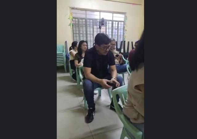 Broadcaster Ben Tulfo waiting for his turn to vote at Pasong Tamo Elementary School.