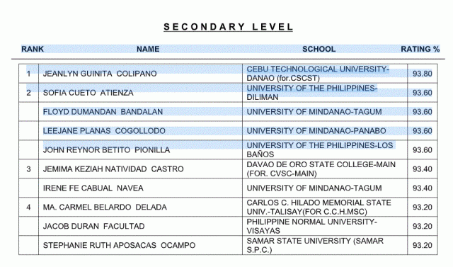 Of the elementary teacher passers, 13,819 are first timers and 2,463 are repeaters. For the secondary teachers, 32,624 passers are first timers and 6,123 are repeaters.