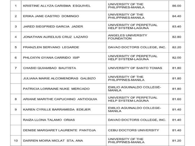 Kristine Allyza Carisma Esquivel gained a rating of 86.00, the highest among 101 examinees who successfully hurdled the exam.