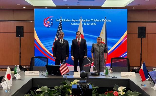 Rubio, Philippine Foreign Secretary Theresa Lazaro, and Japanese Foreign Minister Takeshi Iwaya held their first trilateral meeting Thursday, reaffirming their commitment to enhancing their economic and security ties as they face an increasingly assertive China, which has expanded its military presence in the disputed South China Sea - a key trading route.