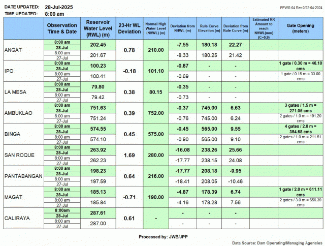 As of this bulletin, Angat, La Mesa, Pantabangan, San Roque, Caliraya, and other dams have not reported any gate openings despite slight increases in their water levels.