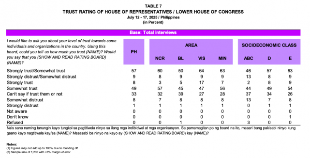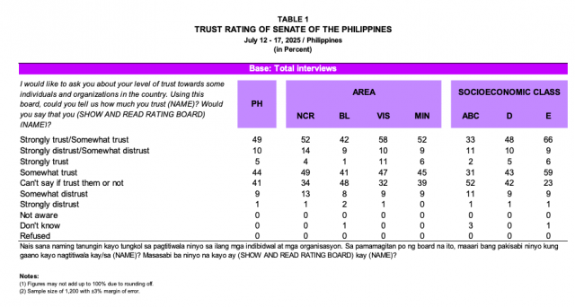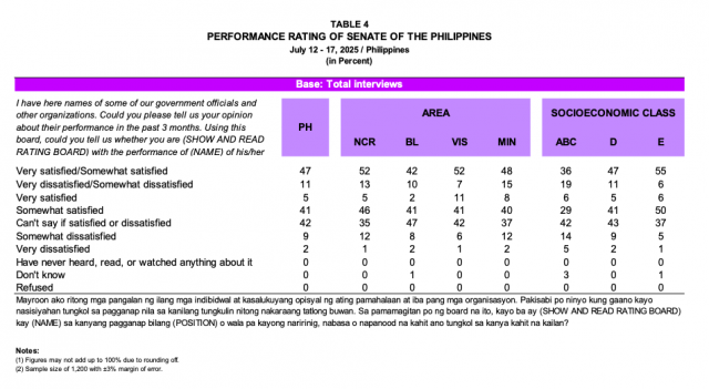 The Senate’s trust and performance ratings for the 2nd Quarter of 2025 dipped while the House of Representatives' numbers improved in the latest OCTA research survey released on Tuesday.