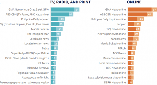 It was followed by ABS-CBN News online at 44%, the Philippine Daily Inquirer online at 29%, Rappler at 23%, and The Philippine Star online at 20%.