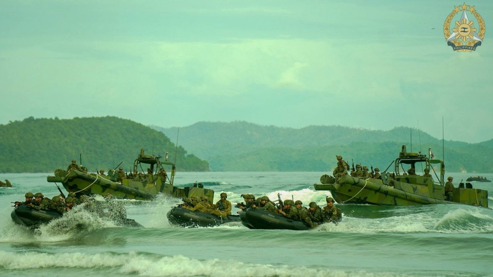 As reported by JP Soriano on Sunday’s 24 Oras Weekend, simulated ground operations were supported by Australian F/A-18 Super Hornets and Philippine Air Force FA-50s overhead while from the sea rushed small fast RHIBs and rubber boats filled with more troops who conducted an amphibious landing.
