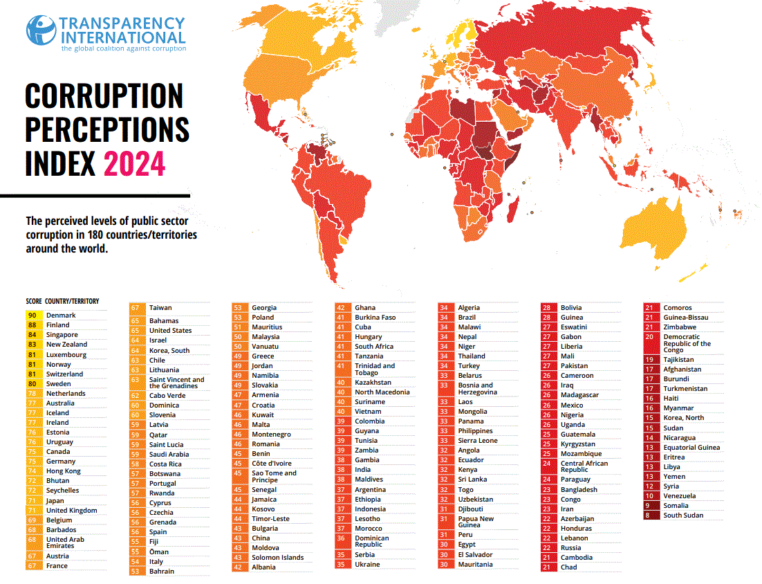 The 2024 CPI showed that corruption is a “dangerous problem” globally, but pointed out that “change for the better” is observed in many countries.