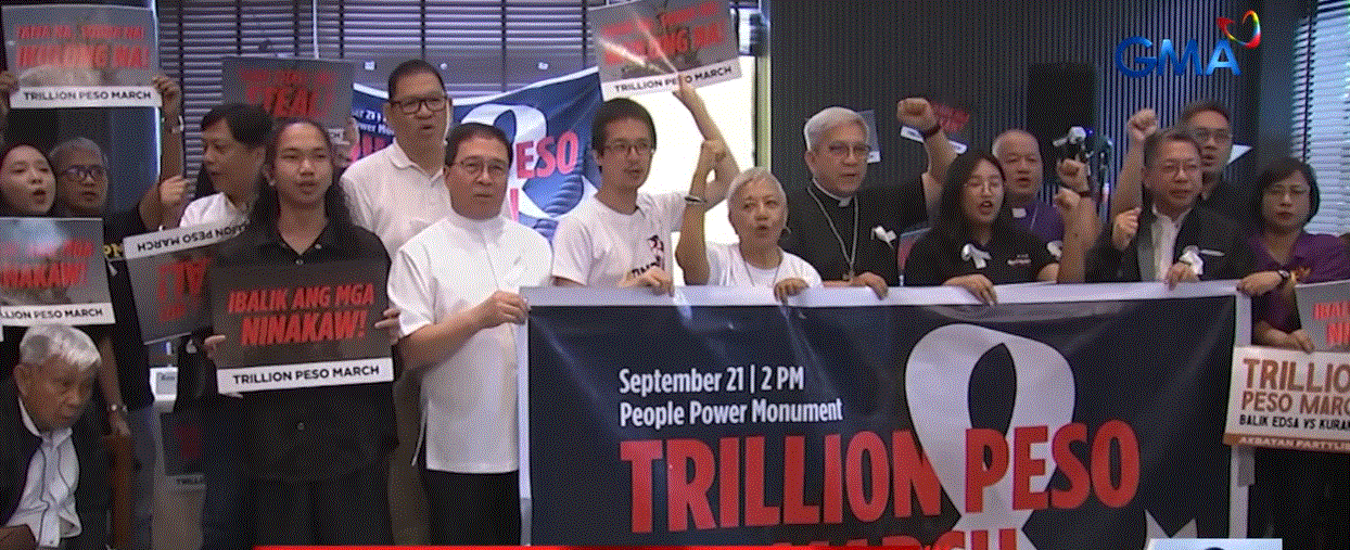 The demonstration, led by church leaders, was organized in response to reports of anomalous flood-control projects, with some ?1.9 trillion said to have been spent on such programs over the last 15 years.