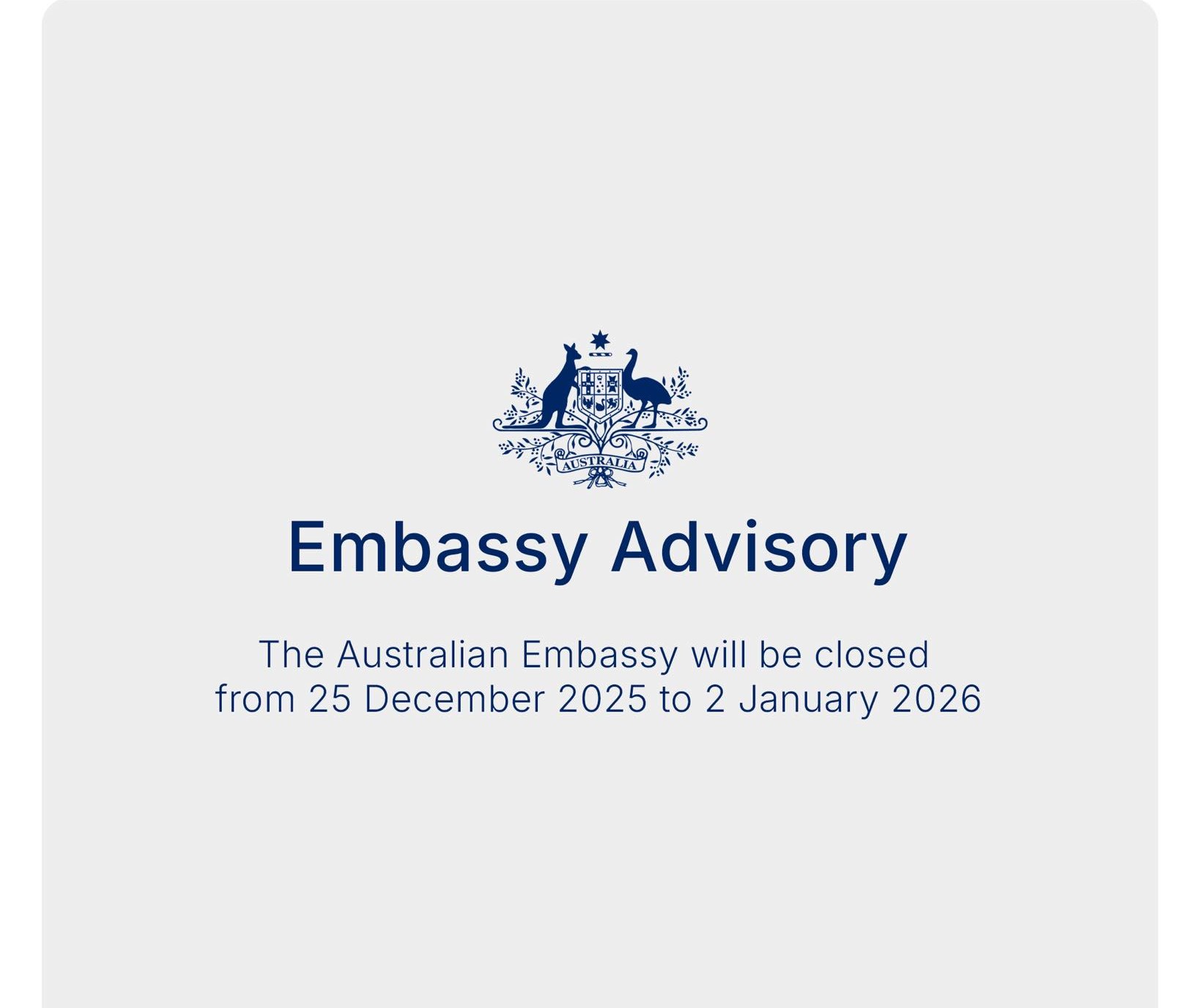 Australian Embassy closed from Dec. 25 to Jan 2, 2026
