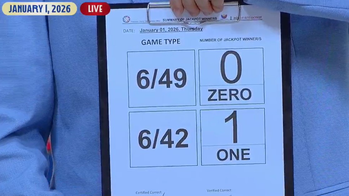 Lone bettor wins P5.94-M jackpot in Lotto 6/42 New Year draw