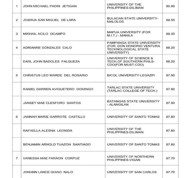 The rest of the examinees who made it to the Top 10 list are as follows: