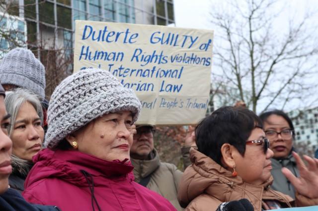 “Ang ganda ng kanyang kulungan, alaga siya ng mga doctor. Kaya nakikiusap po kami sa international at Filipino community na suportahan kami—ang mga biktima sa laban namin. Kahit matagal, masalimuot, at mahirap ay hindi po kami sumusuko. Katulad nung sabi ni Duterte na siya ay matanda at napapagod na. Bakit ako? Matanda na rin po ako. Pero hindi ako napapagod para kamtan ang hustisya, hindi lang para sa ating mga anak, Kundi para sa buhay at Karapatan ng lahat ng mga biktimang kanyang pinaslang.”