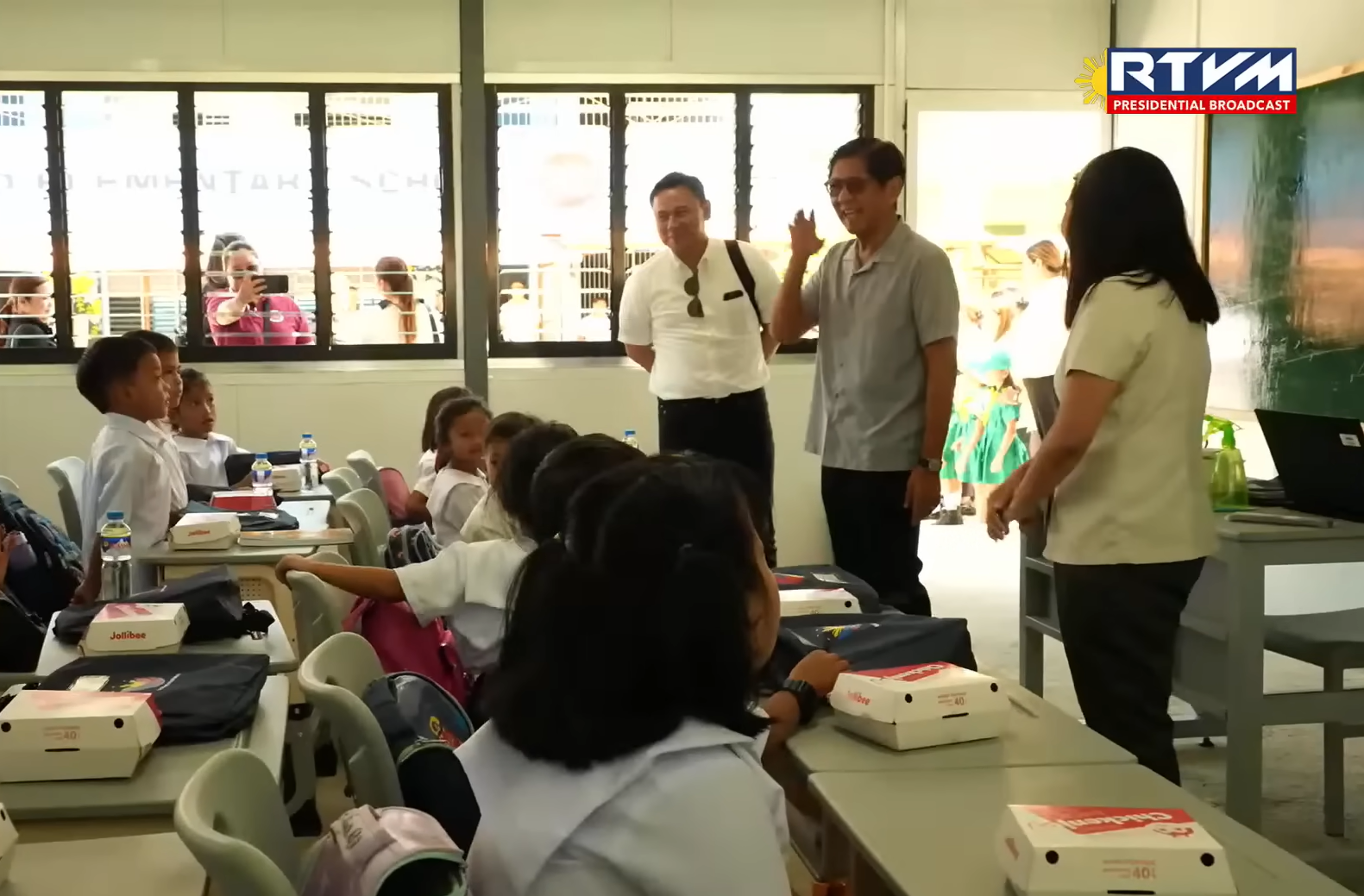 President Ferdinand “Bongbong” Marcos Jr. on Monday inspected one of the newly installed facilities at Marcelo B. Fernan–Polambato Elementary School in Bogo City, Cebu, together with First Lady Louise Araneta-Marcos and Education Secretary Sonny Angara.