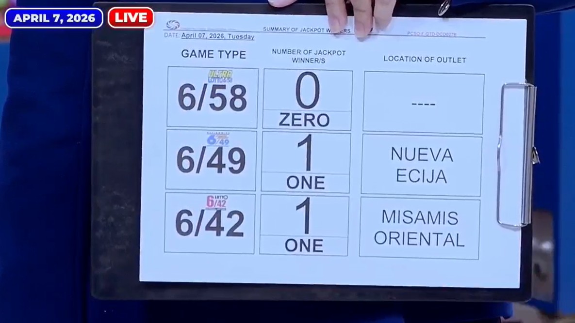 A lone Superlotto 6/49 bettor is P171 million richer while one Lotto 6/42 won the P10 million jackpot on the April 7, 2026 draws, the Philippine Charity Sweepstakes said Tuesday night.