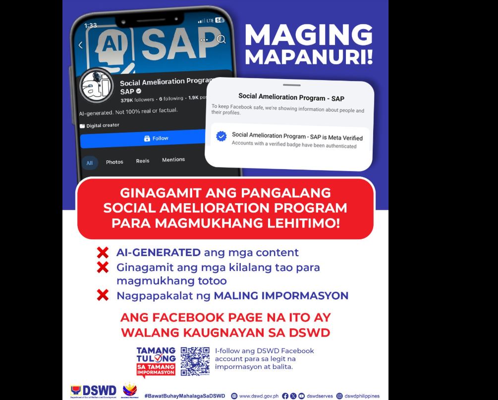 "Kapag sinuri ang mga nilalaman, makikitang hindi malinaw ang pinagmulan ng impormasyon at may mga content na ginagamit ang mga kilalang personalidad para sa atensyon," DSWD said.
