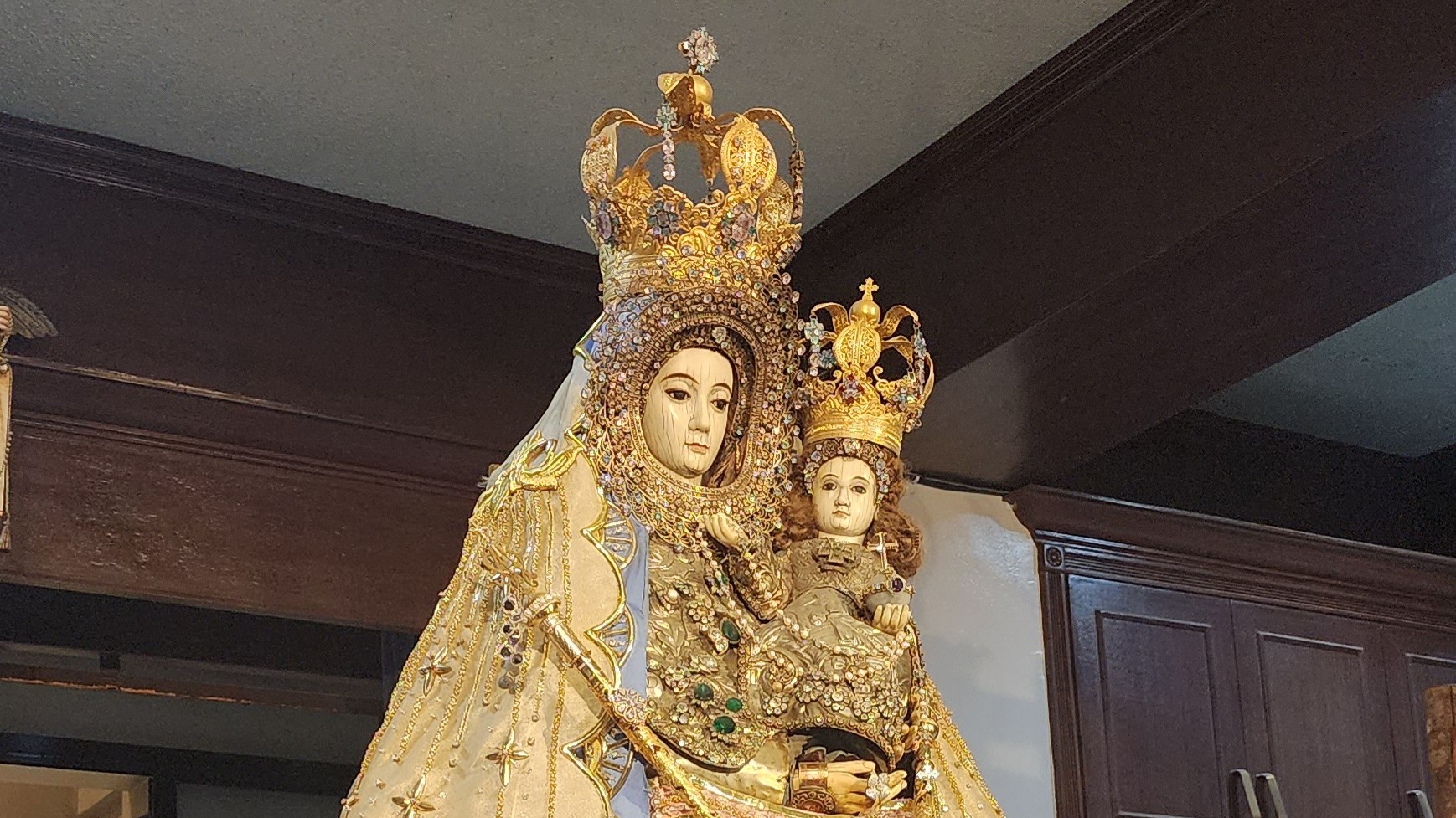 It also pays tribute to the Marian image’s origin story, where the Blessed Mother appeared before a local farmer from a tree and gave instructions to build a church at that place so her children could ask for her supplication.