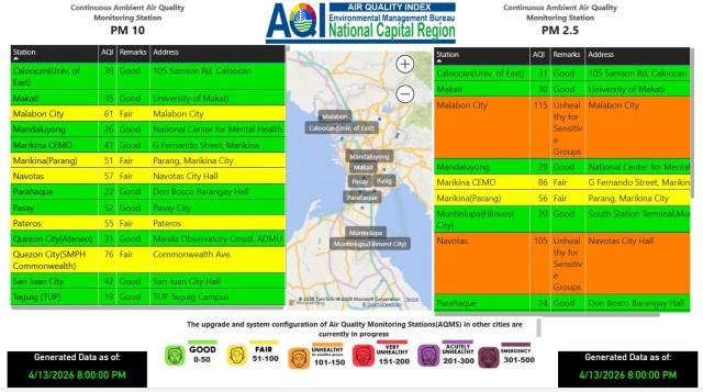 According to its website, EMB-NCR has 15 continuous ambient air quality monitoring stations in the metro, which provide real-time data.