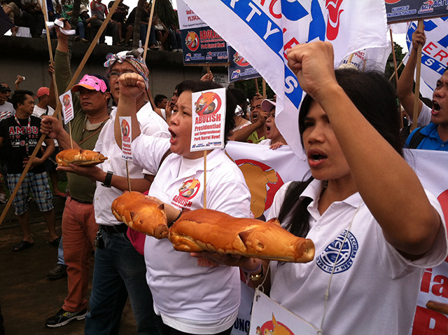 Today, it was “Makibaka! Huwag magbaboy!” (Struggle! Down with the pork barrel!”)