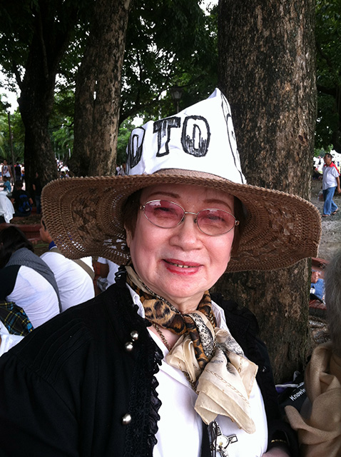 Tayao remembered sleeping on EDSA in 1986, when residents of Manila filled the streets to end Ferdinand Marcos’ twenty-one-year dictatorship. She theorized that an end to corruption would begin in the practices of a private family, and recalled that her own father, a school superintendent, would refuse even holiday gifts, not wanting to risk stealing from public funds. Tayao shouted loud boo’s, along with the rest of the crowd, at the sight of any Philippine politician edging around the protest, looking for support.