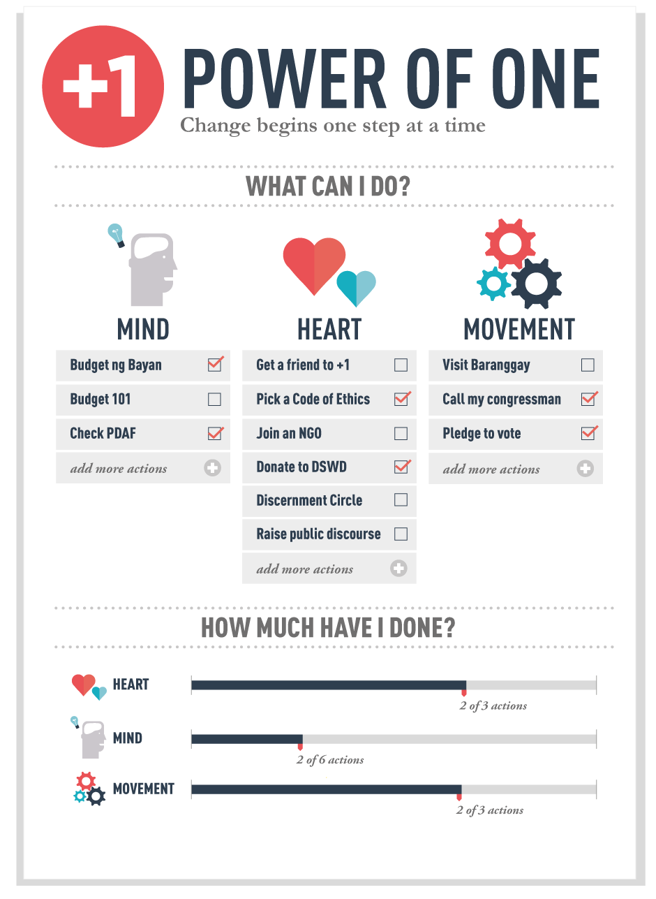 1. MIND: Understanding institutions – Executive, Legislative, and Judicial – and their processes. Without this, productive debate is impossible. For example, one could embark on understanding how the budget system works by visiting Budget ng Bayan and going through the Budget 101 Section.