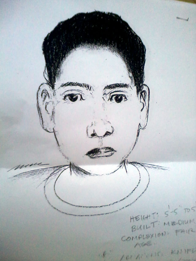 Artist's sketch of one of the two suspects in the killing of UPLB student Ray Peñaranda. UPLB Police Force