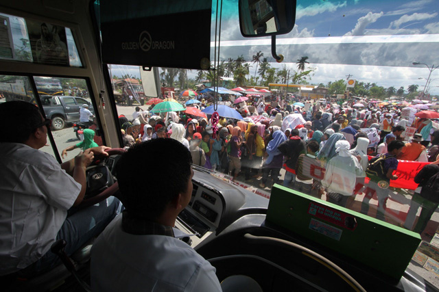 The residents of various towns devastated by Typhoon Pablo barricade for more than 10 hours portions of the national highway in Montevista, Compostela Valley on Tuesday to express their rage against the alleged poor and selective delivery of relief services. The residents also called for the banning of foreign and large-scale logging and mining operations in the region. Karlos Manlupig