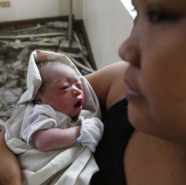 A relative holds newly born baby Beatriz as her mother recuperates at a makeshift birthing clinic in Tacloban city in central Philippines November 11, 2013. Dazed survivors of super Typhoon Haiyan that swept through the central Philippines killing an estimated 10,000 people begged for help and scavenged for food, water and medicine on Monday, threatening to overwhelm military and rescue resources.