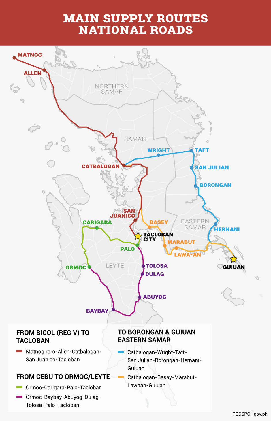 At least 20 municipalities and cities in Leyte and Samar have been supplied with relief goods, according to the Department Public Works and Highways.