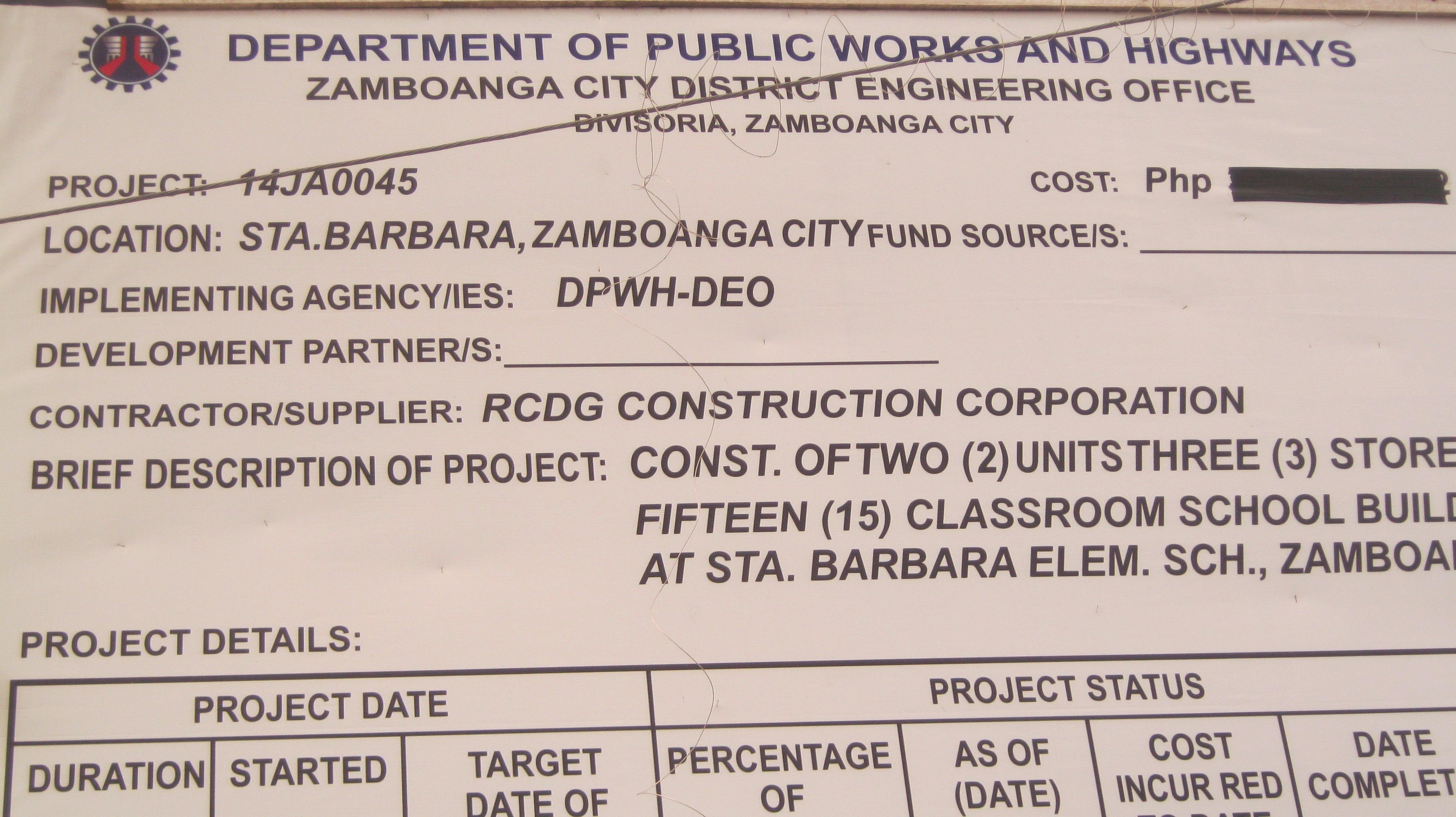 According to a billboard at the entry gate of the school, two three-storey buildings with 15 classrooms each would take 350 calendar days to build.