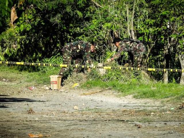 Army Explosive Ordnance Disposal team gather pieces of evidence at the site of the twin explosions that jolted Barangay Semba, Datu Odin Sinsuat, Maguindanao early Friday morning. --Ferdinandh Cabrera
