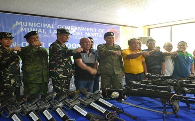 MUNAI, Lanao del Norte – At least 30 loose, high-powered firearms were turned over by the municipal government to the military, the first among the province's 22 towns, after President Rodrigo Duterte called for a heightened drive against loose guns.