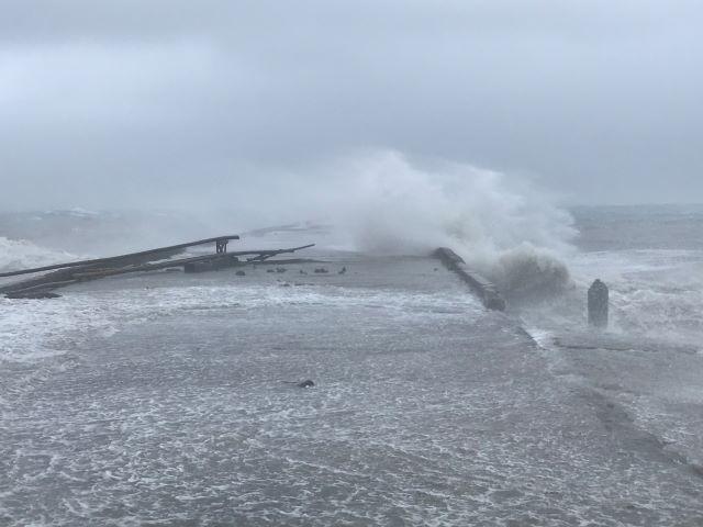 Part of the Atimonan seaport caved in under the pressure of the surges.