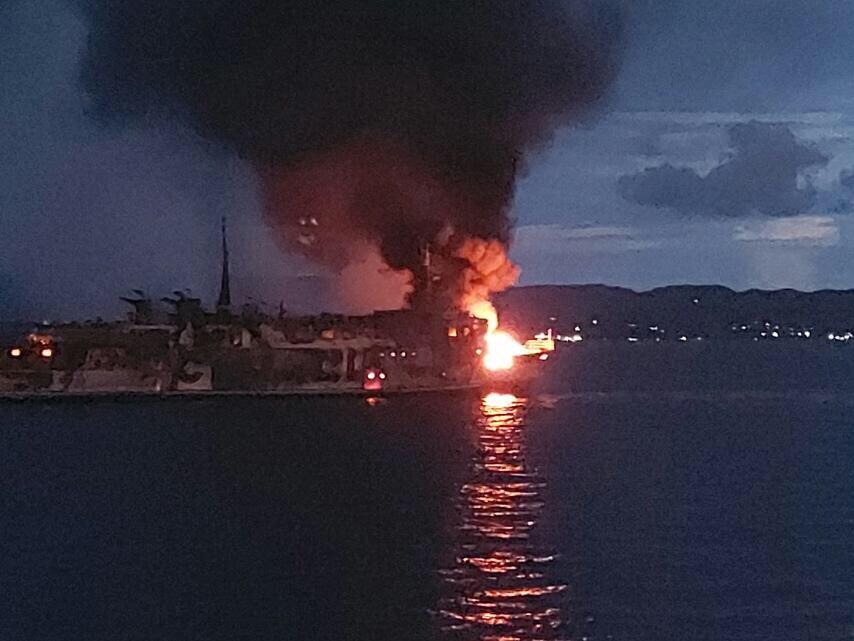 As of 7:30 a.m., MV Filipinas Dinagat is still on fire. The BRP Suluan continues to monitor and conduct maritime safety protocol to notify transiting vessels about the incident. —AOL, GMA News