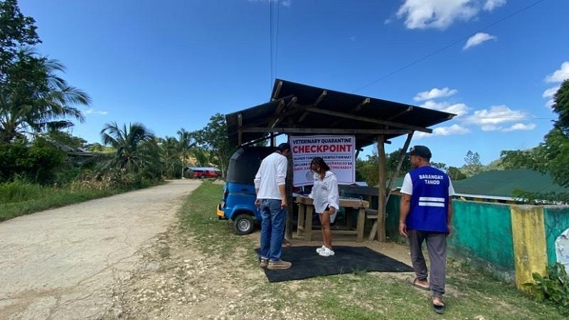Pilar Mayor Wilson Pajo said check points were held in the village including neighboring villages of San Carlos, Catagdaan and Inaghuban where residents and visitors have to step on the footbath.