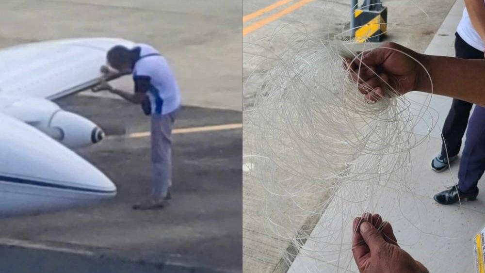 Fortunately, the string did not get into the propeller and cause an accident but the plane was forced to return to the airport and make an emergency landing.