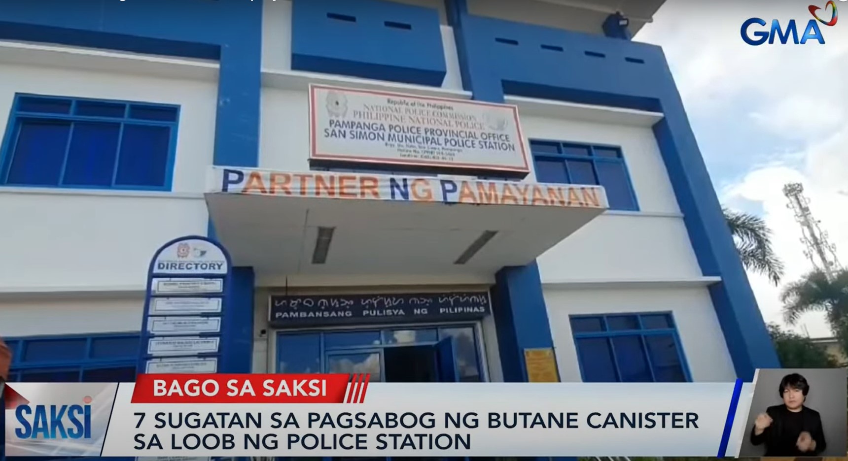 Seven people were injured after a butane canister exploded inside the San Simon Municipal Police Station in Pampanga, according to a Saksi report on Wednesday.