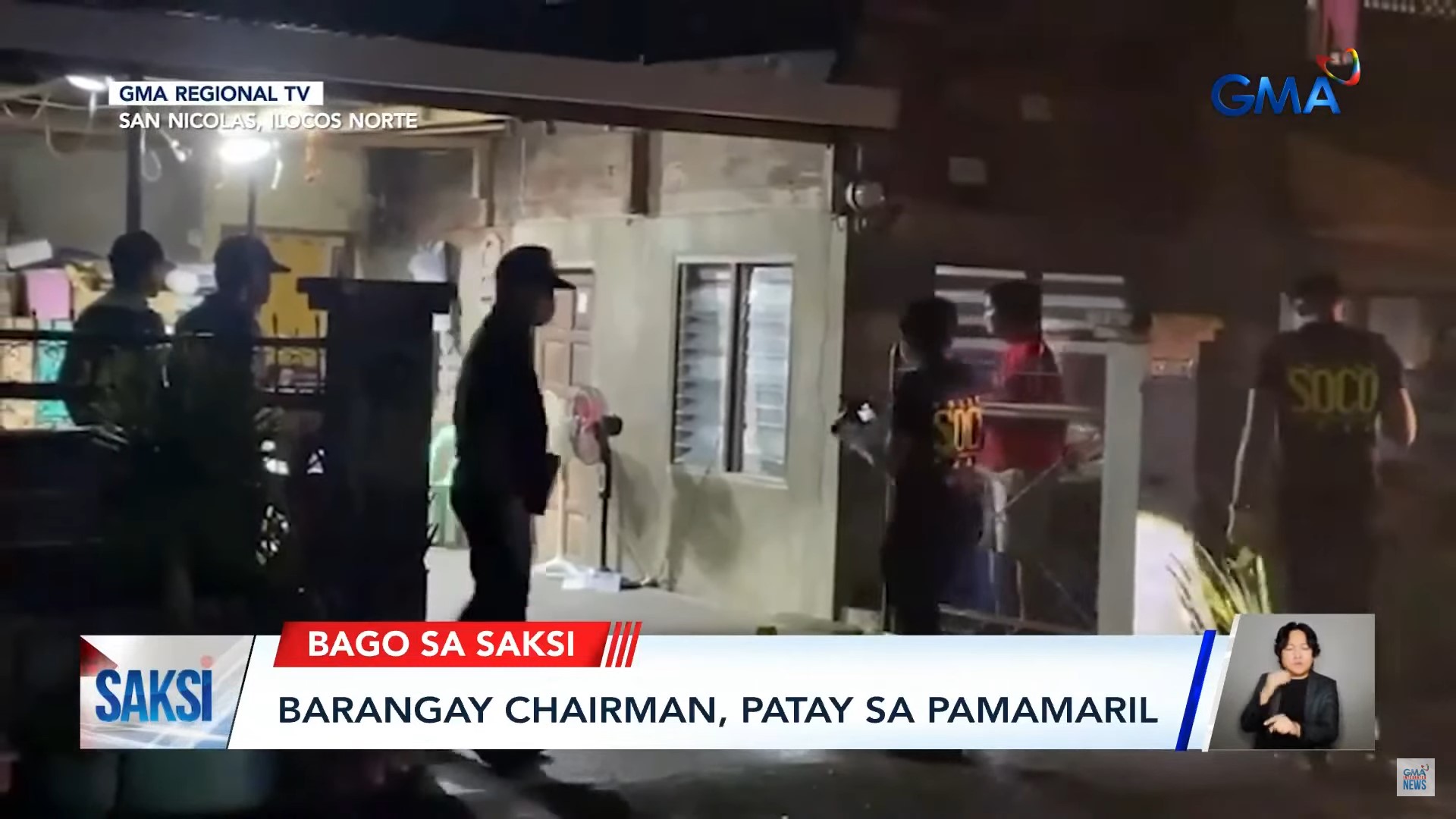 A barangay chairman in San Nicolas, Ilocos Norte was shot to death outside his house in the town of San Nicolas, Ilocos Norte.