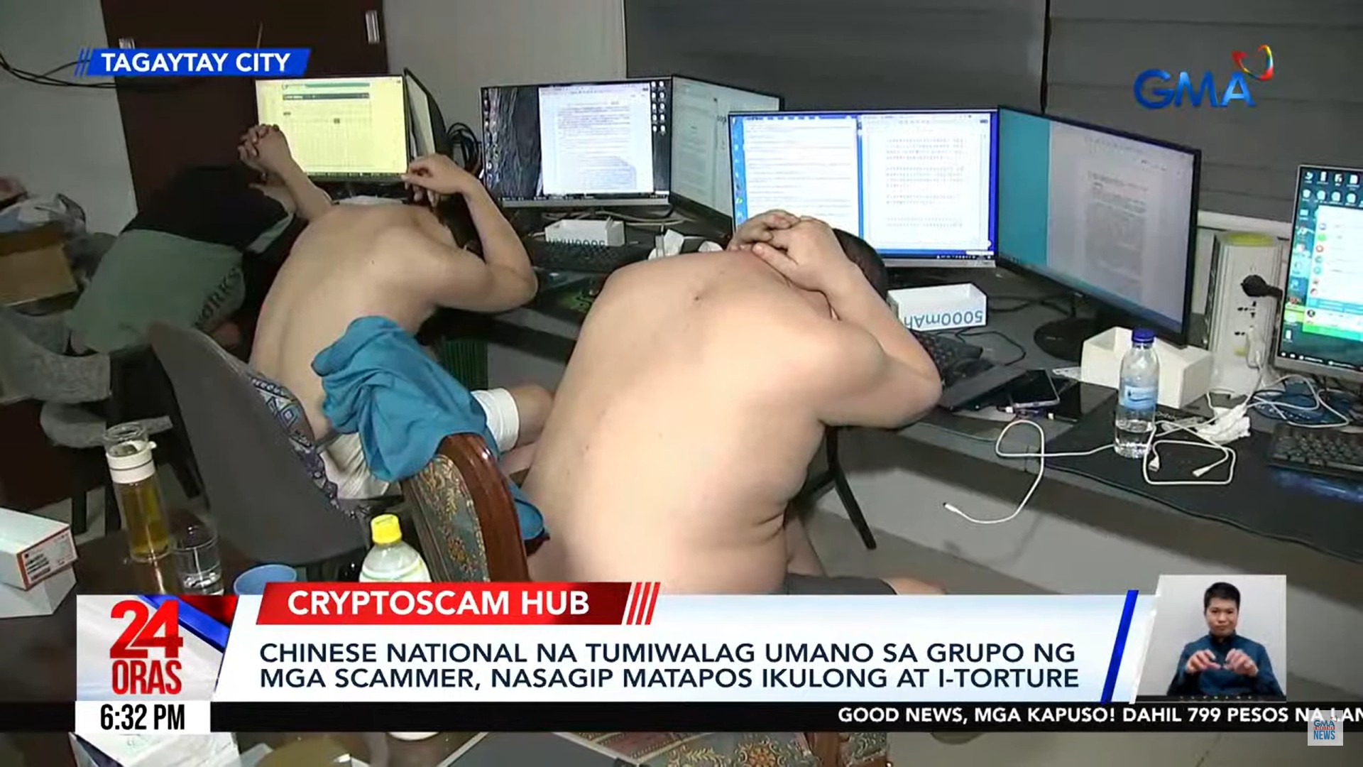 According to a 24 Oras report by Emil Sumangil on Wednesday, the National Bureau of Immigration (NBI) apprehended 17 Chinese men, and seized several phones, sim cards, and computers allegedly used for cryptoscams.
