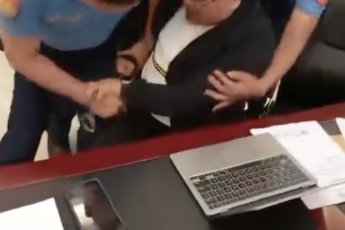 Personnel of the Cebu City Police Office led by Police Colonel Antonietto Cañete put handcuffs on Atty. Collin Rosell, former Cebu City administrator, for alleged usurpation of authority.