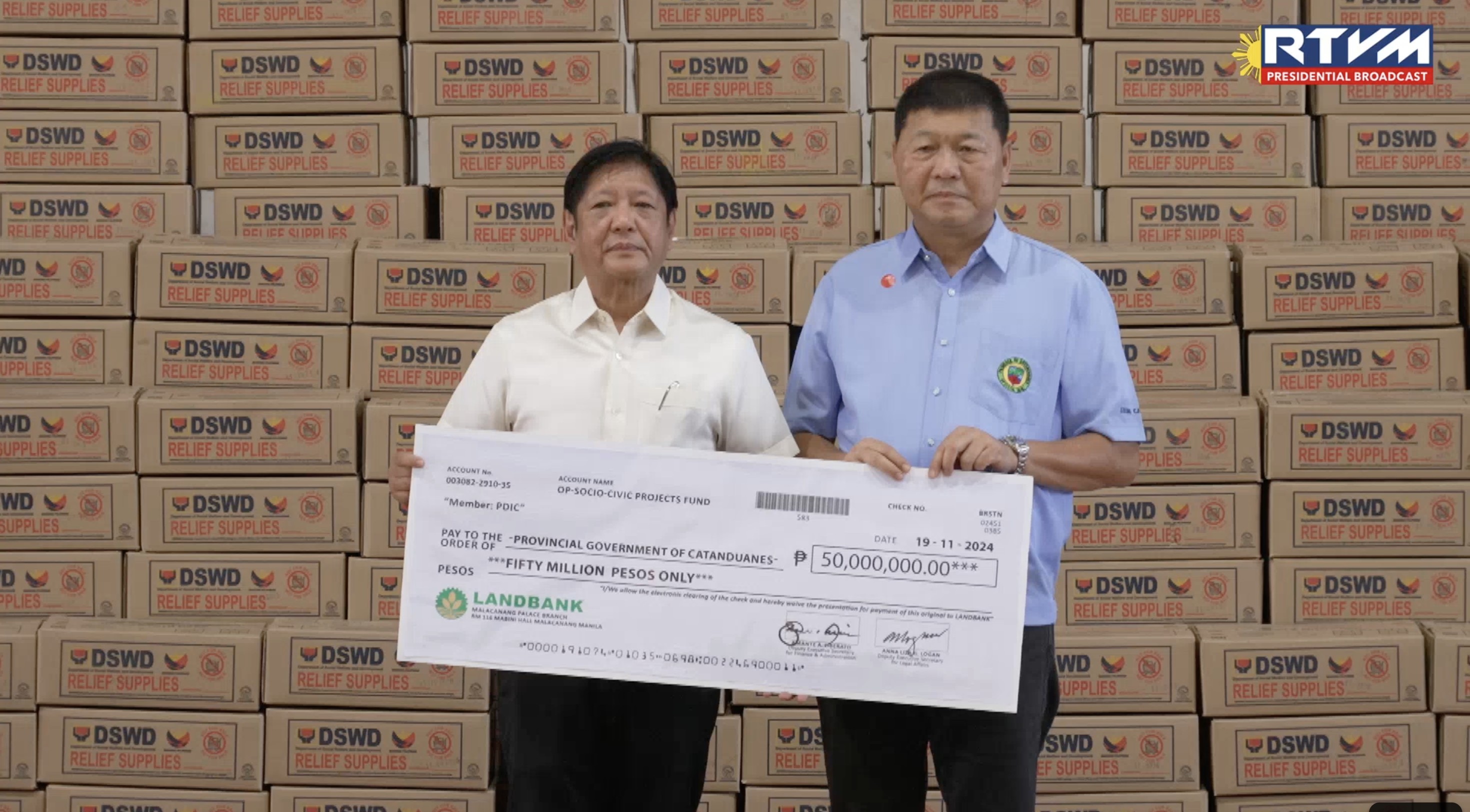 President Ferdinand Marcos Jr. on Tuesday gave a P50 million assistance to the province of Catanduanes amid the damage brought by Super Typhoon Pepito.