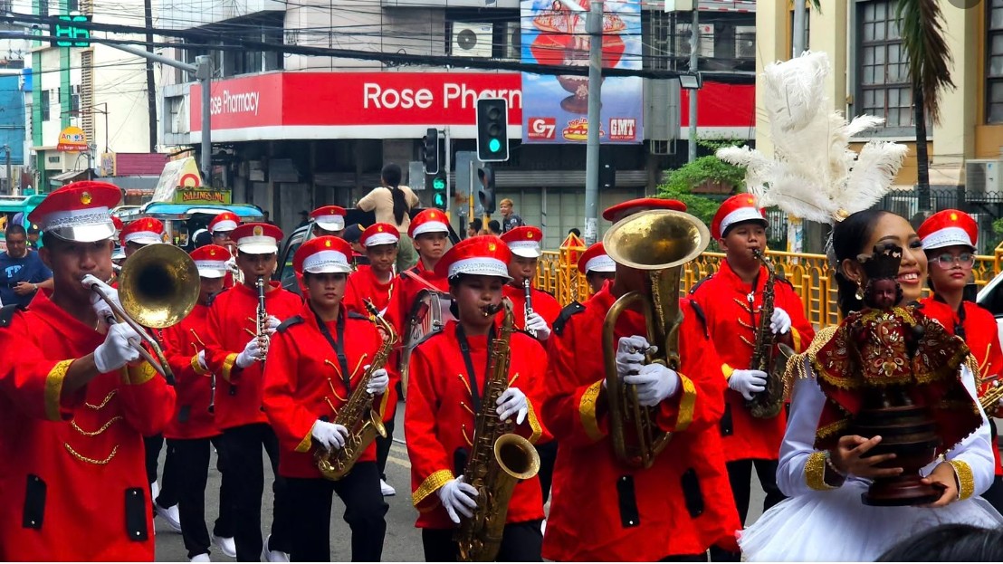Contingents of the brass band competition parade the streets of Cebu City with their uniforms and festive performances for Sinulog 2025.