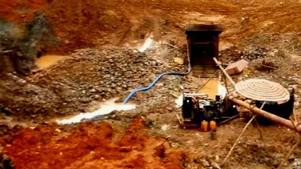 Confiscated from site 2 were eight sacks of fine sand with gold; sluice machines, matting, electric and hydraulic pumps, solar lights, and excavators; and gallons of fuel and related tools used for gold processing.