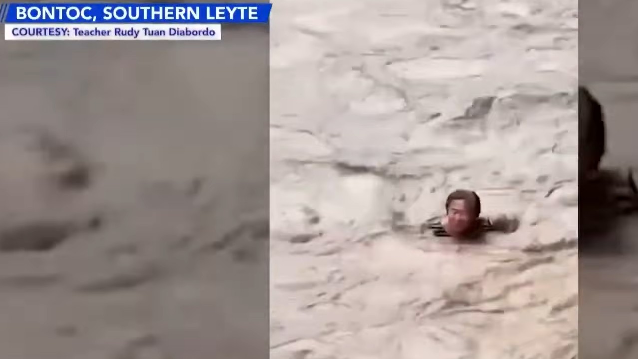 Some teachers braved a raging river in Bontoc, Southern Leyte just to get home, after it overflowed due to the rainfall brought by tropical cyclone Verbena.