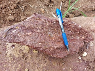 X-ray fluorescence results also showed high concentrations of alumina and iron oxide, along with silicon dioxide, calcium oxide, phosphorus pentoxide, and titanium dioxide.