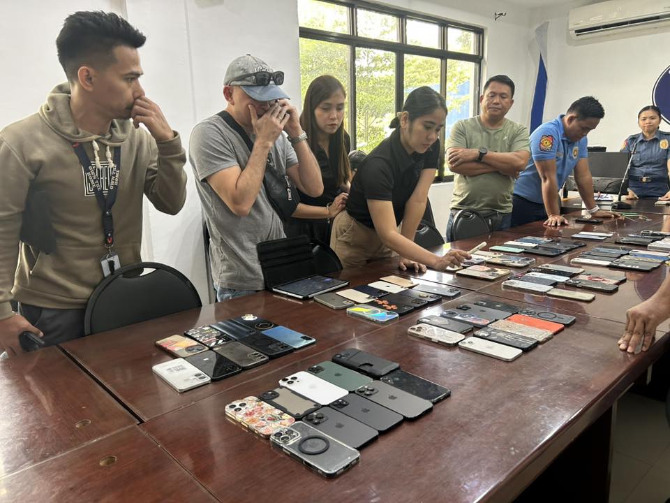 The phones were brought to the Cebu City Police Office, spread on a table for owners to identify their items.